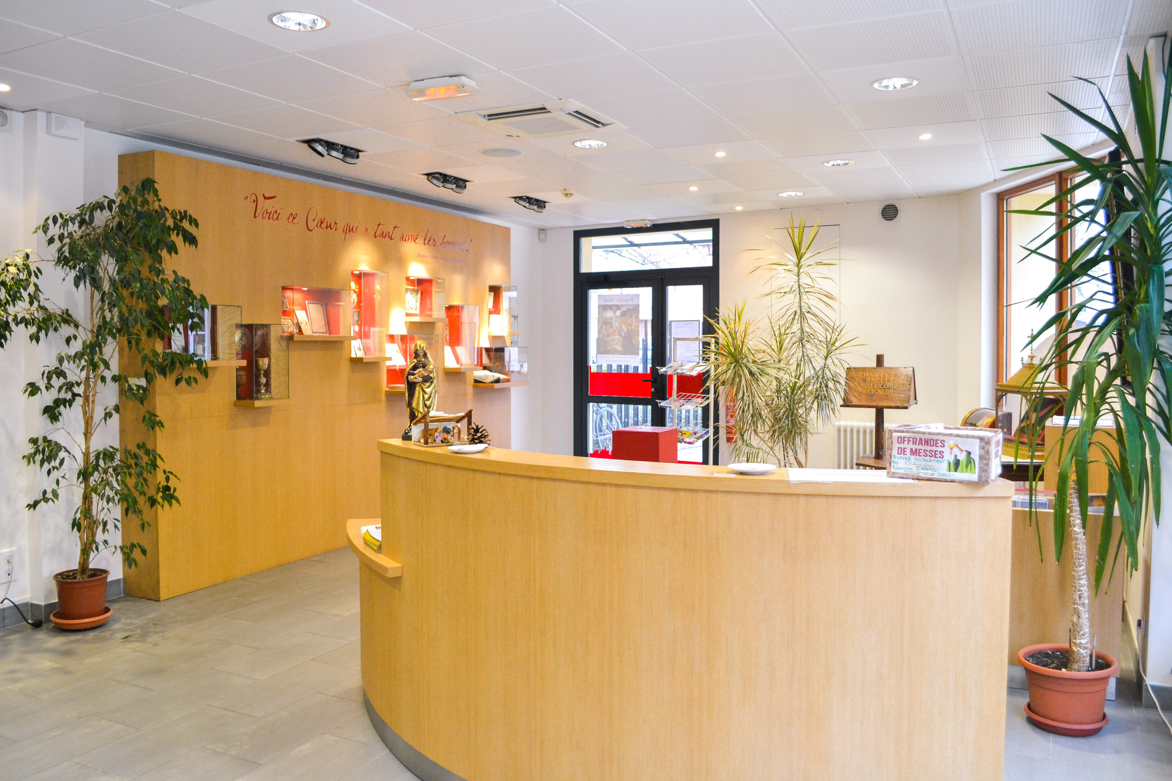 Paray le Monial étant un lieu de pèlerinage de plus en plus visité, il manquait un espace pour centraliser toutes les informations et services dédiés aux pèlerins : ce fut chose faite avec l'aménagement du rez de chaussée de l'immeuble Cor Christi idéalement situé en face de la Chapelle des Apparitions : choix de l'éclairage, harmonies colorées, création et fabrication de mobilier.