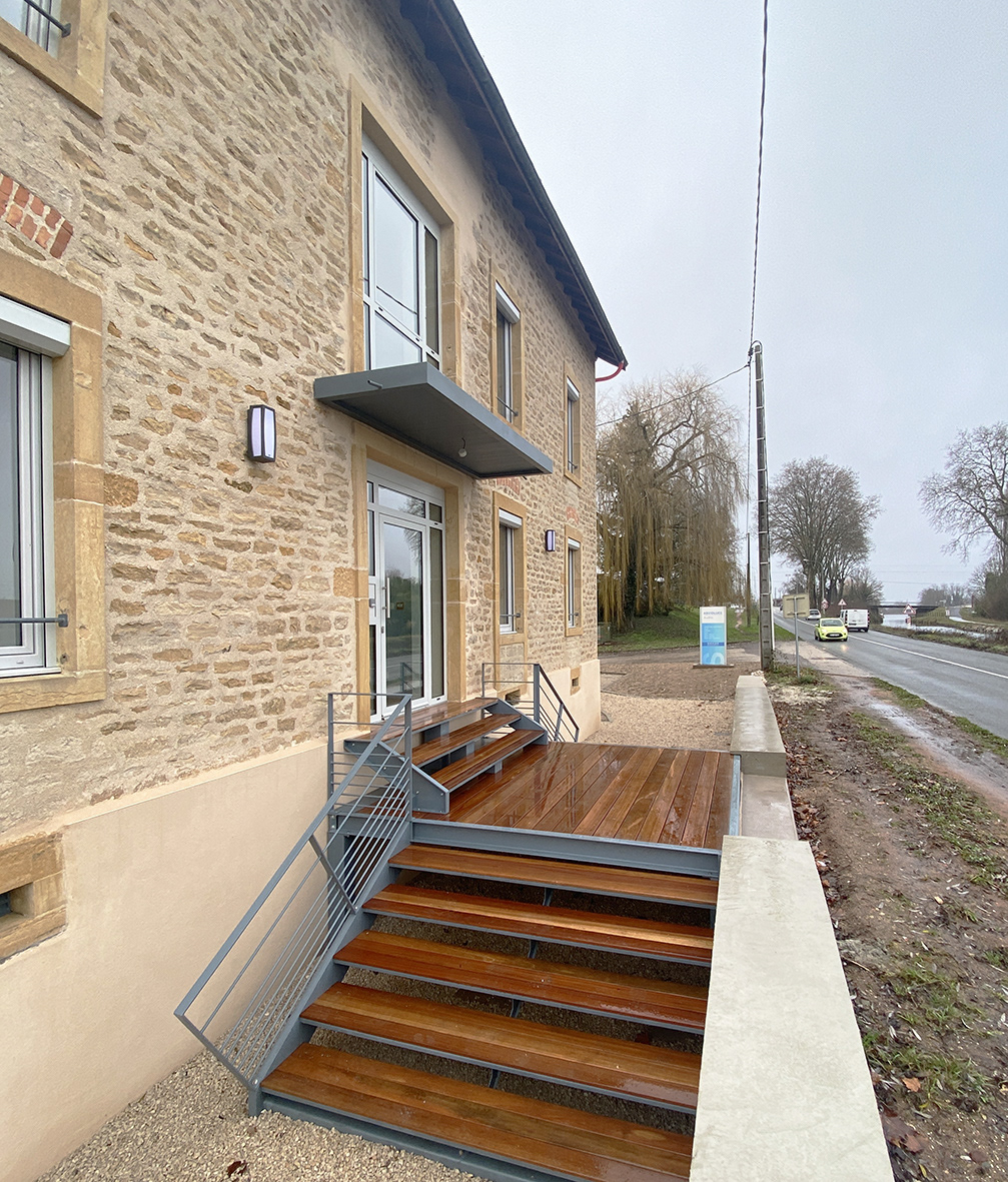 DÉMOLITIONS / PURGE : Association Genèses (Paray/Charolles 71) | Terrassements / VRD : Bernigaud TP (Saint Yan 71) | GROS-OEUVRE : Thomas (Digoin 71) | FAÇADES : Artisanat façades (Digoin 71) | Menuiseries extérieures aluminium : Febvre (Génelard 71) | SERRURERIE : Girard (Chenay le Châtel 71) | Menuiseries intérieures bois : Girhay (Vitry en Charollais 71) | Platrerie / Peinture : Fayet (Digoin 71) | SOLS SOUPLES : Saint Maclou (Châlon sur Saône 71) | Electricité / CF : LR-ÉLEC (Gueugnon 71) | PLOMBERIE SANITAIRES : GLPE (Paray 71) | CLIMATISATION RÉVERSIBLE / VMC : Thévenet & Fils (Paray 71) | SIGNALÉTIQUE : SÉRI-ROSI (Paray 71)