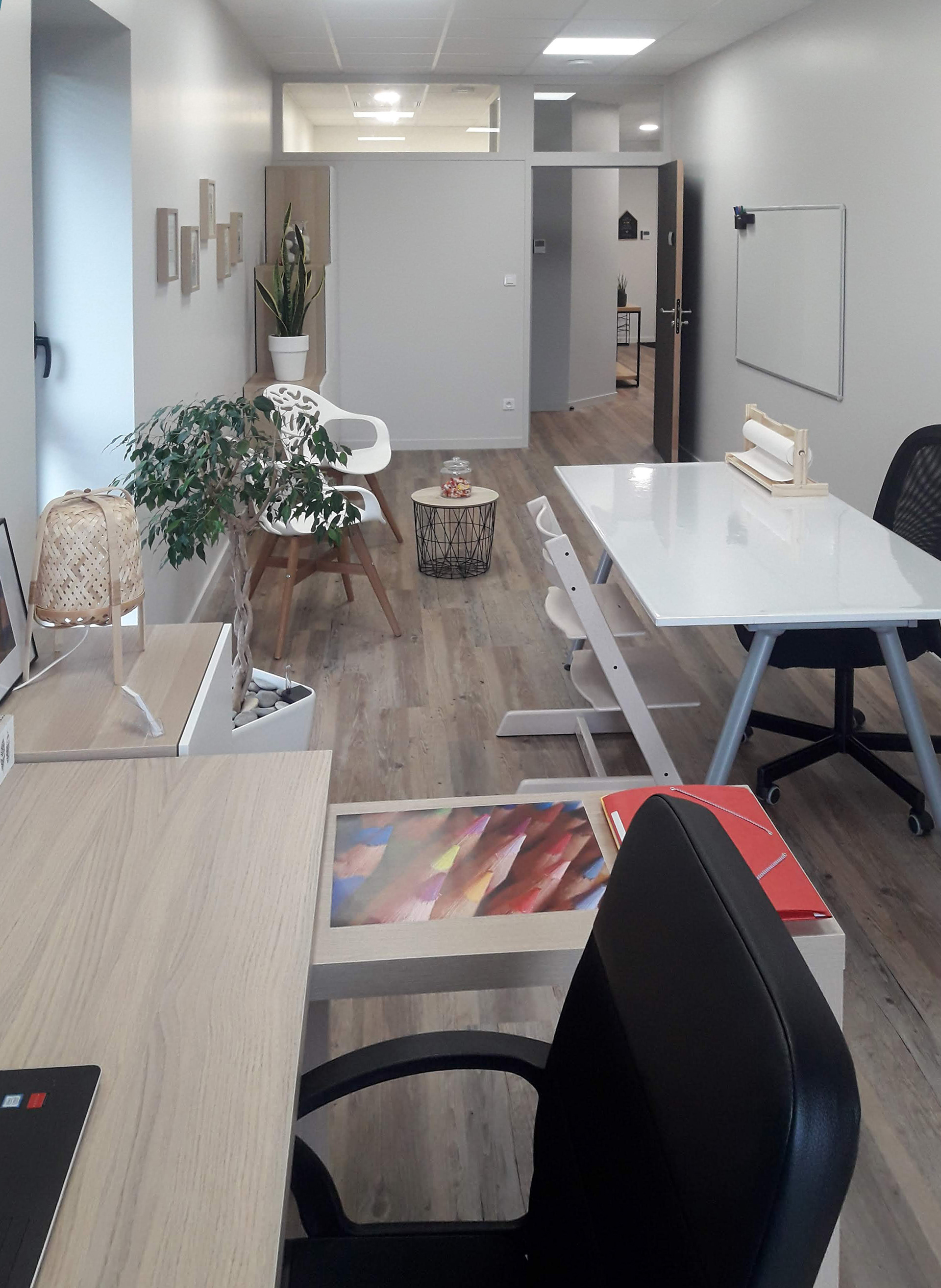 Cécile, suite à une reconversion professionnelle, a acheté ce local "nu" pour installer son activité et recevoir ses patients. Nous l'avons accompagnée au long de la phase de conception, puis son mari Nicolas a pris le relai pour la préparation & le suivi des travaux. Elle peut maintenant travailler de façon optimale, et partager une partie des locaux avec une autre profession libérale.