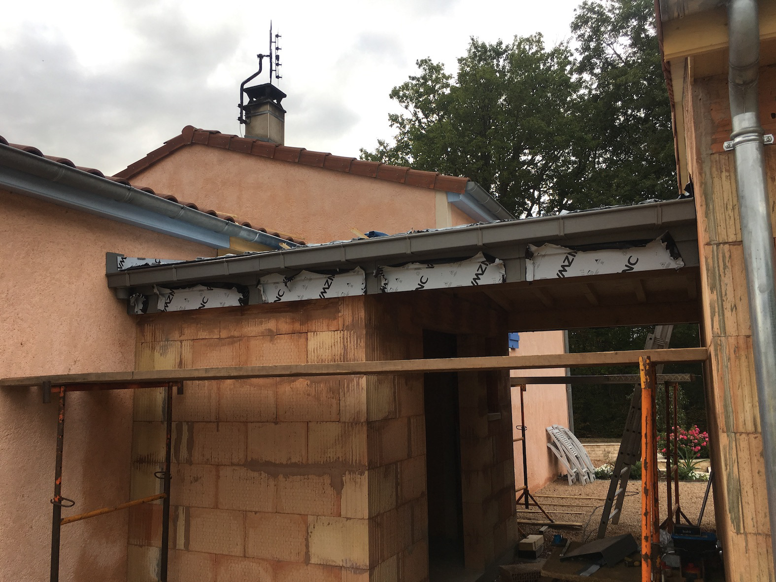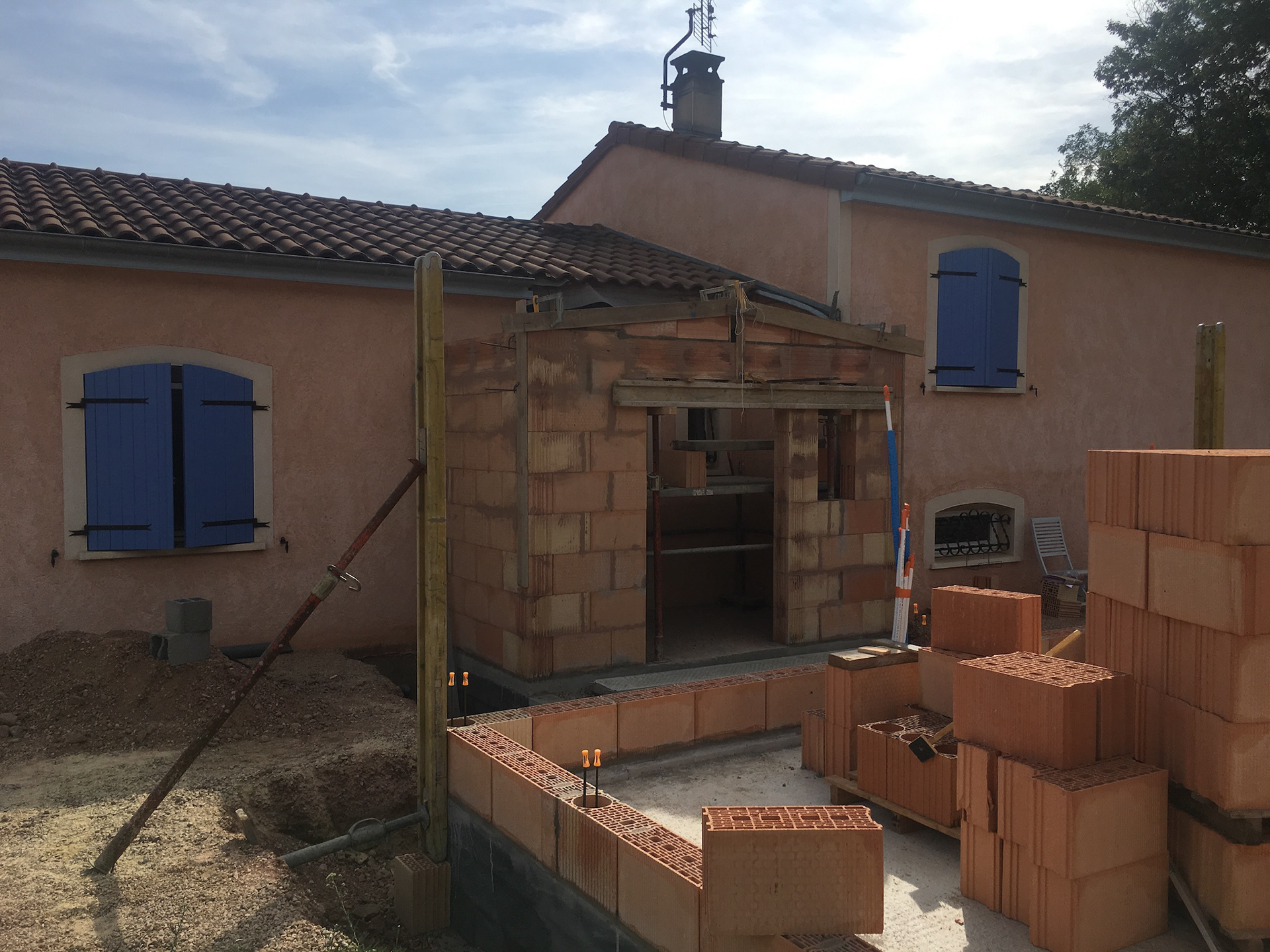 Séverine & Thomas, propriétaires d'une maison d'une quinzaine d'années, souhaitaient l'agrandir mais ne savaient pas comment s'y prendre. Après avoir clarifié leurs besoins à moyen et long termes, nous leur avons proposé une extension comprenant un bureau et une salle de bains pouvant aussi servir de local technique à leur future piscine. Nous en avons profité pour re-qualifier l'entrée de la maison avec un auvent ainsi qu'une partie des pièces à vivre.