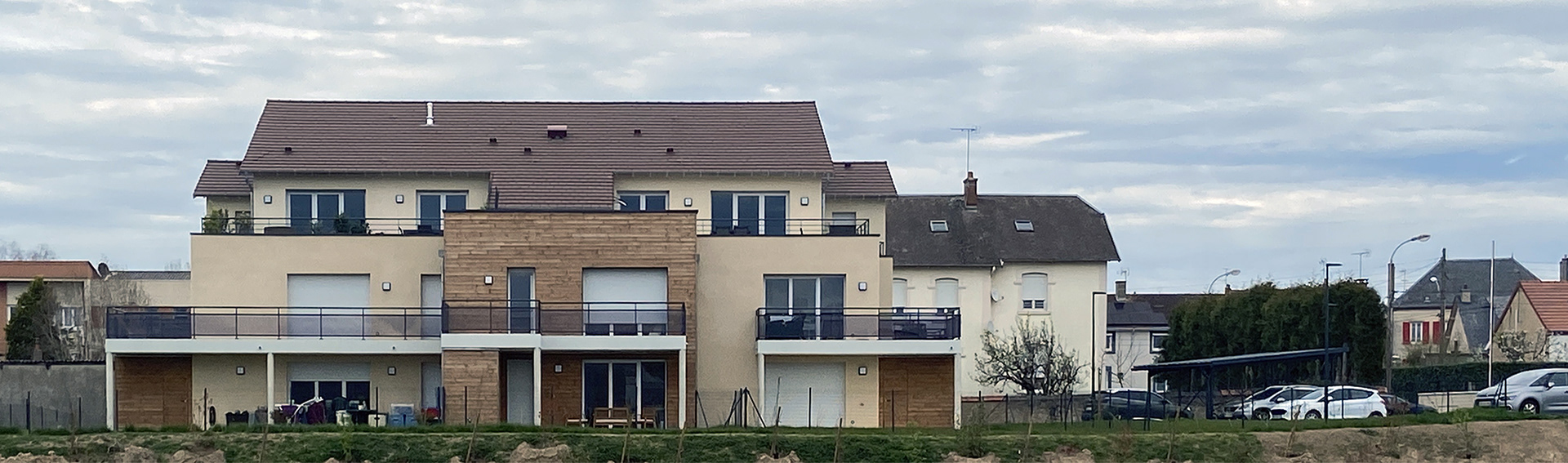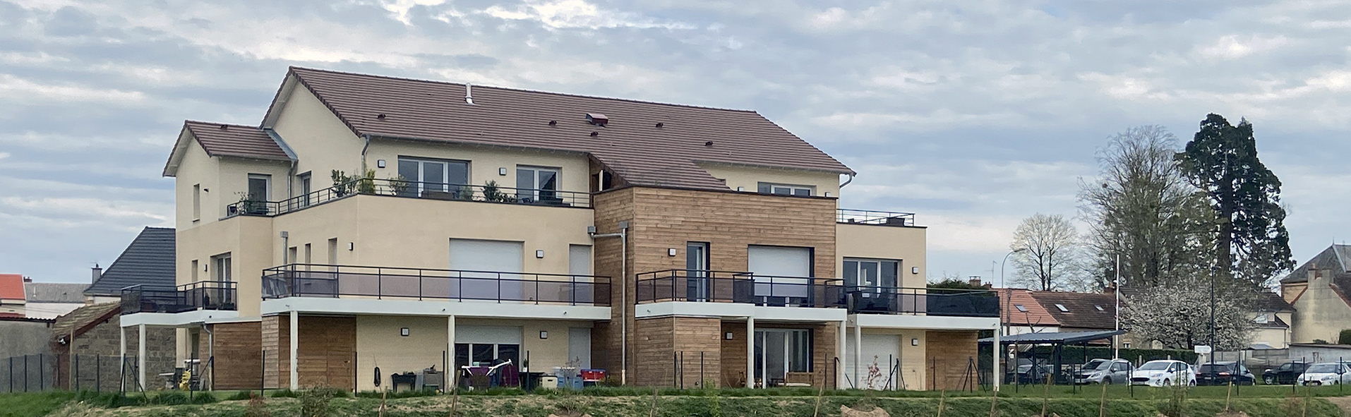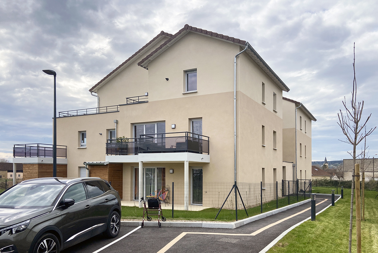 Coop Habitat Bourgogne nous a sollicité pour la construction d'un immeuble de 12 logements à Gueugnon. Un bel exemple de compacité /optimisation des surfaces tout en préservant des jeux de volumes.