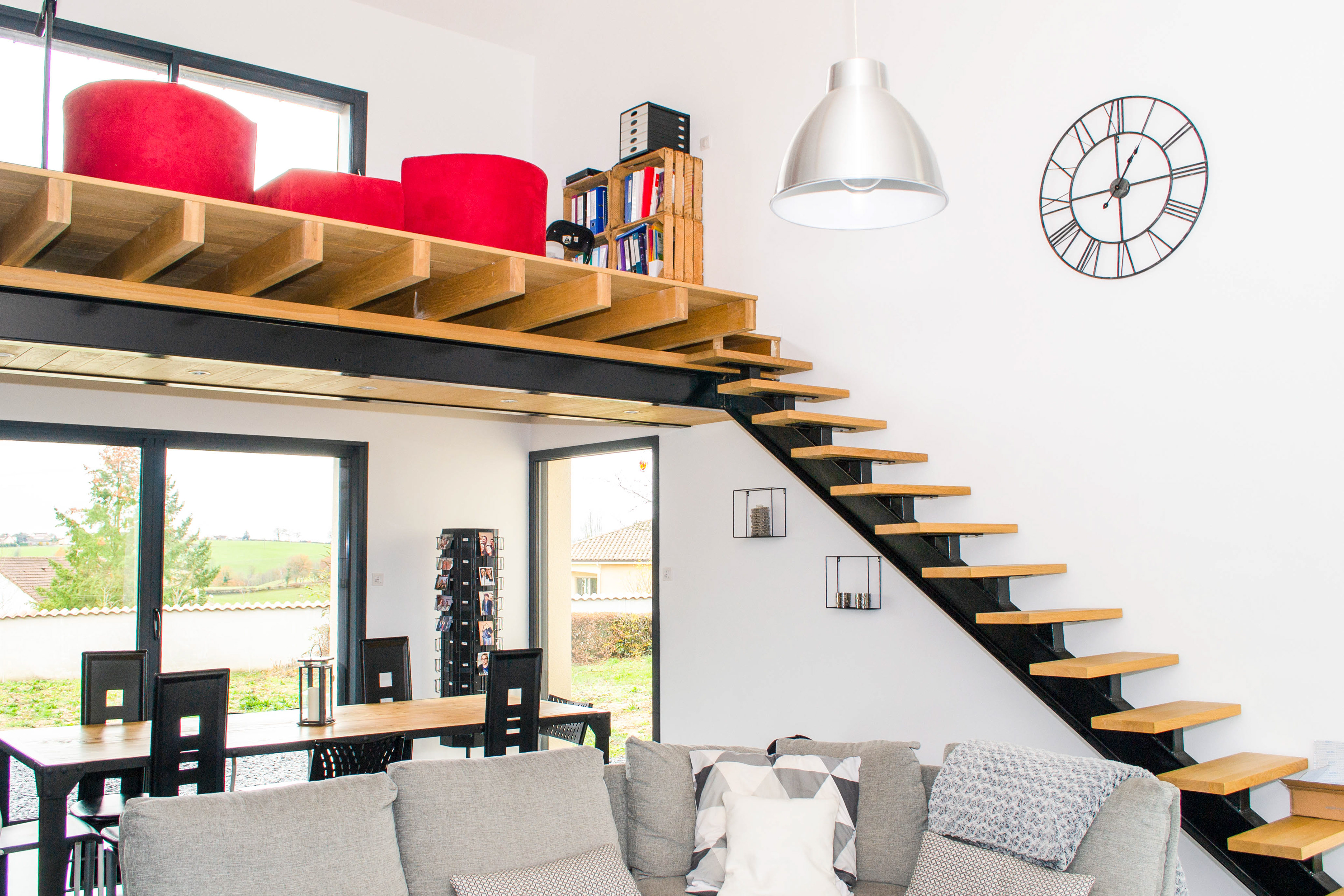 Emma et Julien ne souhaitaient pas avoir la maison de ce fameux Monsieur tout le monde. Ils ont donc opté pour la construction d’une maison de style radicalement contemporain avec des espaces intérieurs optimisés au profit des espaces de vie. Leurs demandes ont été intégrées : suite parentale avec douche et dressing, espace salon-séjour en double hauteur ouvert sur la cuisine et sur le paysage campagnard.